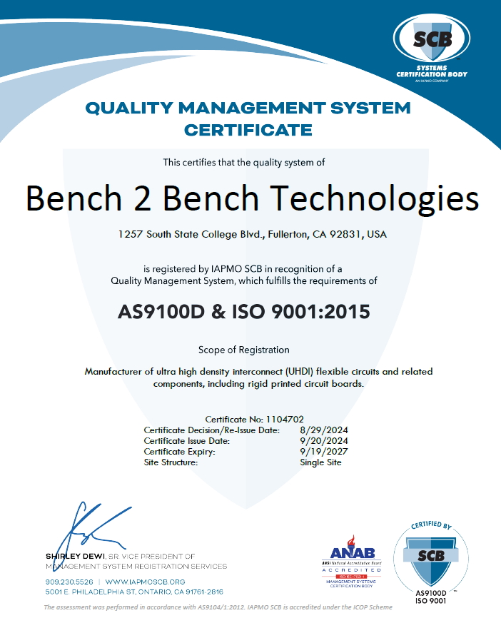 Ultra thin materials, and fine features means more real estate on the flexible circuit. Features and product thicknesses are measured in microns (much smaller than the mils/industry standard) and are nearly invisible to the unaided eye.